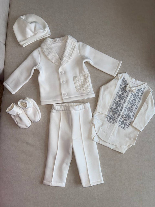Baby Boy Ceremony Set – Minimal White Outfit - Sizes 62 EU, 68 EU